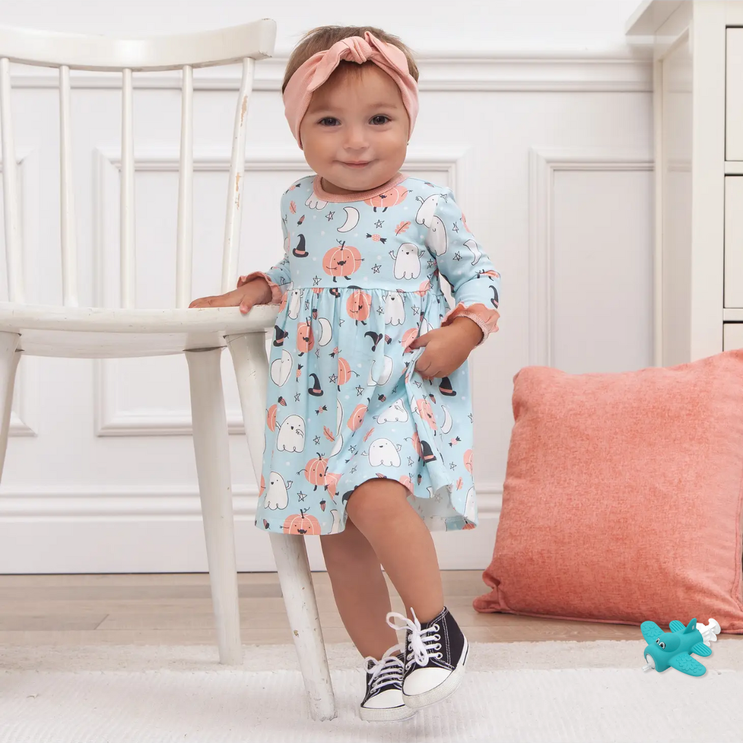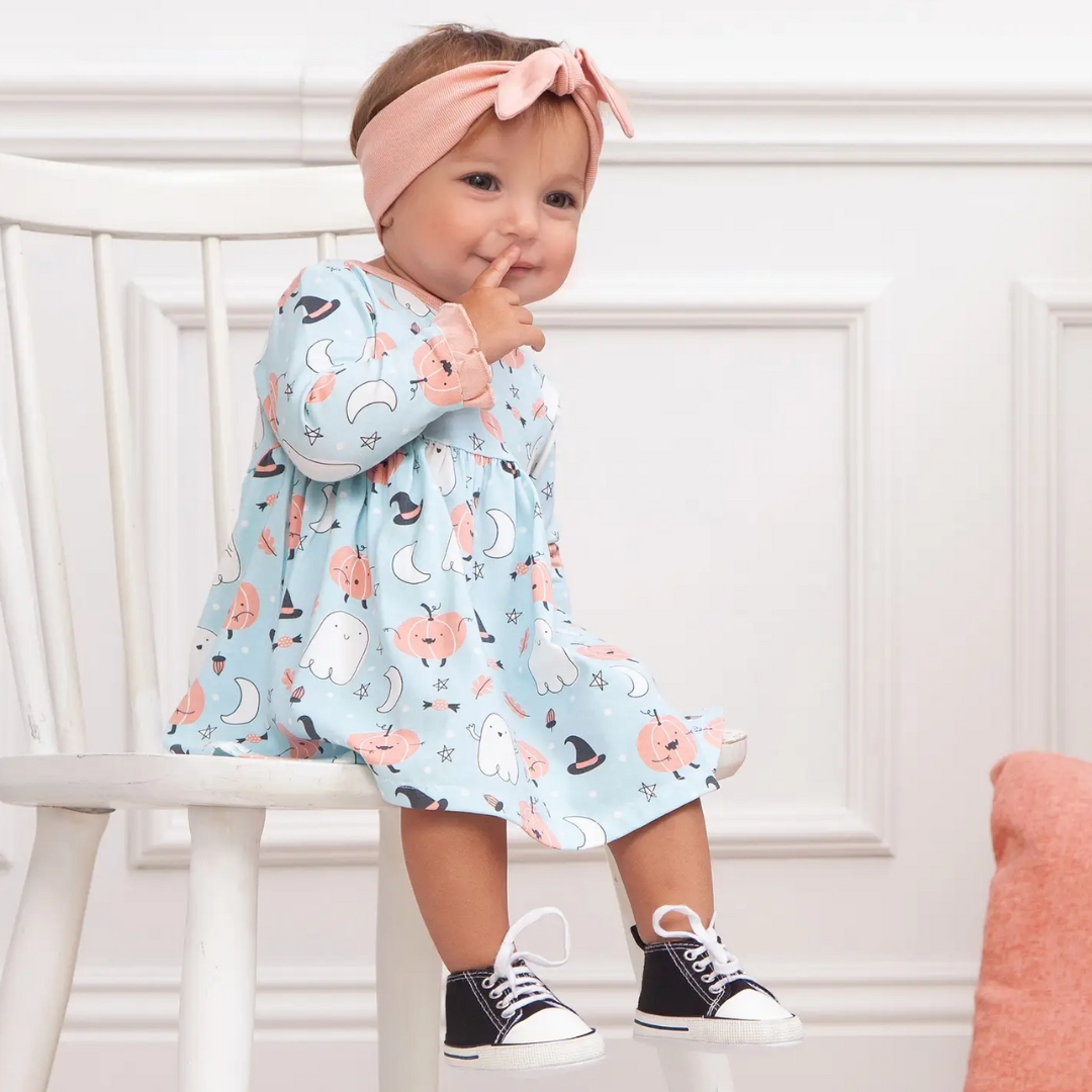 Dress your little one in pure Halloween delight with our adorable, eco-friendly bamboo baby dress, designed to sprinkle the magic of the season on your baby's very first Halloween celebration! This dress is a perfect blend of whimsy, comfort, and spooky cuteness.